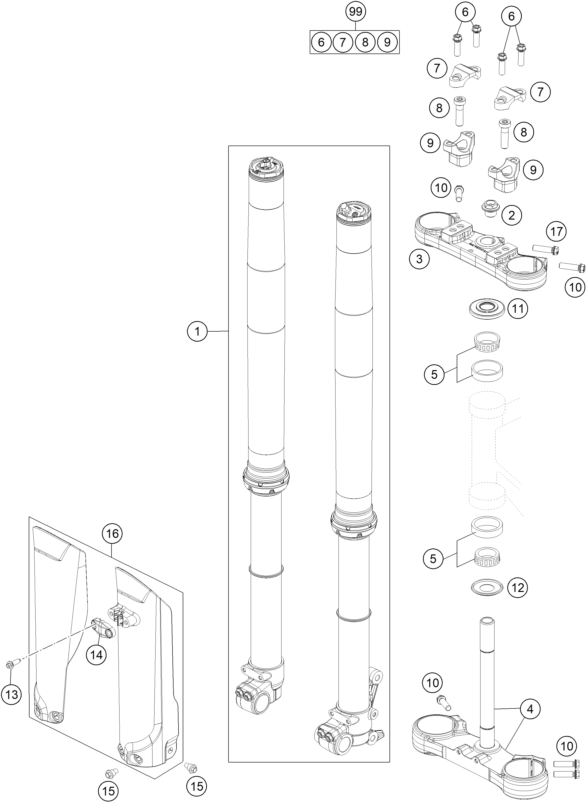 FRONT FORK, TRIPLE CLAMP