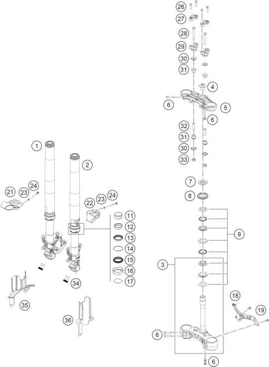 FRONT FORK, TRIPLE CLAMP